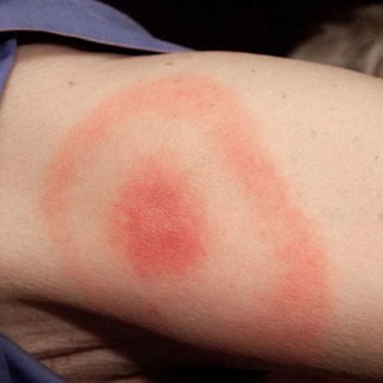 Одним з типових проявів хвороби Лайма є мігруюча еритема. Проте в 1/3 випадків вона не розвивається. На місці укусу кліща виникає червона папула. Пізніше зона гіперемії мігрує, тобто розширюється, а центр стає бліднішим. Загальний стан хворого майже не порушується, а сама висипка не болить та не свербить. Без лікування мігруюча еритема зберігається 2-3 тижні. [3]